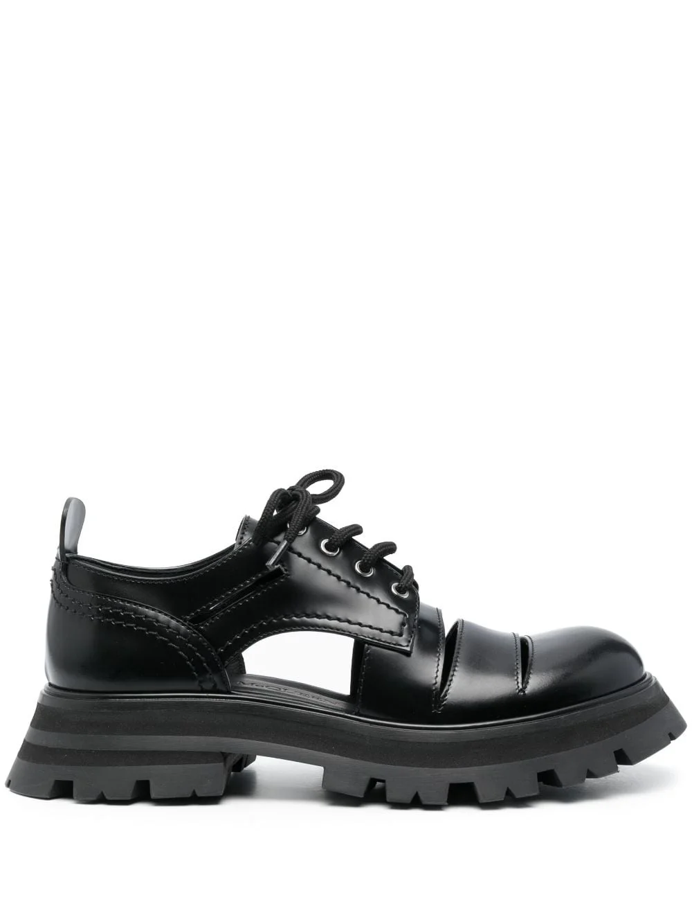 cut-out leather Oxford shoes Highlights - Black - Calf leather - Cut-out detailing - Round toe - Front lace-up fastening - Chunky rubber lug sole Made in Italy Composition Leather 100% SIZE & FIT Measurement HEEL 1.96 in(5 cm) Sole height 1.18 in(3 cm)