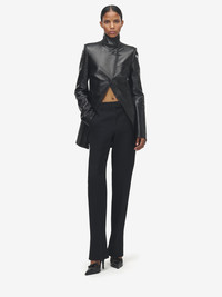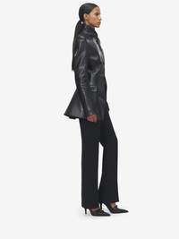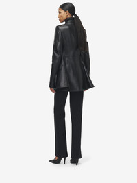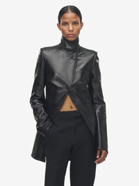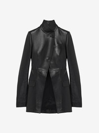 Cutaway jacket in black smooth lambskin leather. High neck, fitted waist and side flap pockets. Finished with a front button fastening. Product details - High neck - Side flap pockets - Front button fastening - Product code: 848201Q5AQF1000 - Made in ITALY - Material: 100% Lamb Leather