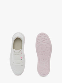 White canvas lace-up Deck Plimsoll with multicolour eyelets and a thick bi-colour oversized rubber sole. The lace-up is detailed with a rubber wrap sole and tonal Alexander McQueen signature, finished with a suede heel counter. Round toe shape silhouette details rubber toe cap. Material: 100% Cotton