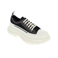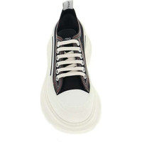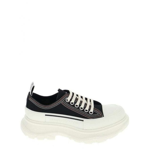 Product Code: 657579W4L3M1355 Denim black Tread Slick Lace Up from Alexander McQueen. The lace-up is detailed with a textured rubber wrap and Alexander McQueen signature, finished with a signature ribbon on the heel of shoe. Round toe shape silhouette details rubber toe cap. 100% Cotton DETAILS Made in Italy Colour: black SIZE AND FIT True to size