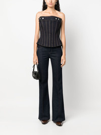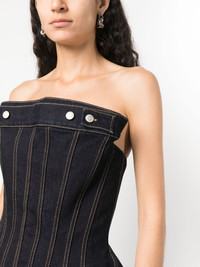 denim bustier top Alexander McQueen’s indigo-blue bustier top riffs on classic corsetry. It’s cut from stretch denim to a sculpted silhouette accented with contrast topstitching that evokes a contoured look. Highlights - Indigo blue - Stretch-cotton - Denim - Corset style - Contrast stitching - Silver-tone hardware - Rear zip fastening - Curved hem Made in Italy Composition Lining: Polyester 65%, Cotton 35% Outer: Cotton 98%, Elastane 2% SIZE & FIT Model measurements Height 5 ft 10 in(1.79 m) Bust/Chest 33.07 in(84 cm) Hips 35.82 in(91 cm) Waist 24.01 in(61 cm) FittingInformation Designed for a very close and sculpting fit Made from a midweight stretch fabric, this piece offers elasticity and flexibility when worn This piece fits true to size – take your usual size