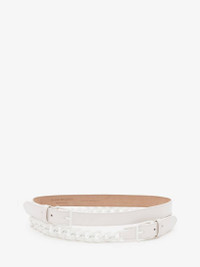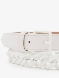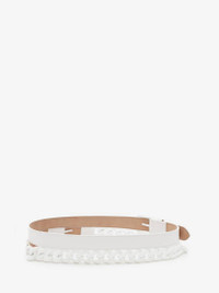 White calfskin leather thin double belt with white-finished chain detailing and buckles. Brass hardware. Material:100% Calf Leather Product Code:6670141BRCA9007