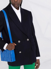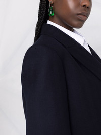 double-breasted wool-blend blazer navy wool-blend peak lapels double-breasted button fastening shoulder pads long sleeves buttoned cuffs chest welt pocket four side flap pockets American rear vent Made in Italy Composition Outer: Wool 99%, Cashmere 1% Lining: Cupro 100% SIZE & FIT Model measurements Height 5 ft 10 in(1.78 m) Bust/Chest 31.1 in(79 cm) Hips 33.85 in(86 cm) Waist 24.01 in(61 cm) FittingInformation This piece fits true to size. We recommend you get your regular size Cut for a loose fit Made with a mid-weight non-stretch fabric Washing instructions Dry Clean Only