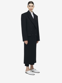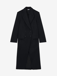 Double-breasted coat in black wool felt. Peak lapels, chest pocket and side flap pockets. Finished with a T-bar chain back detail. Product details - Peak lapels - Side flap pockets - Button fastening - Product code: 834064QKABM1000 - Made in ITALY - Material: 100% Wool