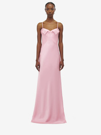 Evening dress in pale pink double satin. Sweetheart neckline with sculptural draping. Finished with a back zip fastening. Product details - Sweetheart neckline - Back zip fastening - Product code: 839910QBABW5067 - Made in Italy - Material: 100% Silk