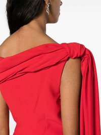 draped off-shoulder gown Sarah Burton draws from the blood red rose to inspire the vibrant hue of this gown. The off-shoulder neckline is deftly draped and knotted before cascading into a sash down one side while the hem just barely skims the floor. Highlights - Red - Crepe texture - Off-shoulder - Sleeveless - Knot detailing - Sash detail - Floor-length - Straight hem - Full lining - Concealed side zip fastening Made in Italy Composition Lining: Acetate 74%, Silk 26% Outer: Viscose 52%, Acetate 48% SIZE & FIT Model measurements Height 5 ft 9 in(1.76 m) Bust/Chest 31.1 in(79 cm) Hips 36.61 in(93 cm) Waist 24.8 in(63 cm) FittingInformation The dart stitching adds structure and a closer fit in the torso of this piece Made from a midweight non-stretch fabric This piece fits true to size – take your usual size Measurement HIPS 34.01 in(86.4 cm) LENGTH 59.01 in(149.9 cm) WAIST 24.01 in(61 cm) BUST 30 in(76.2 cm) Washing instructions Dry Clean Only