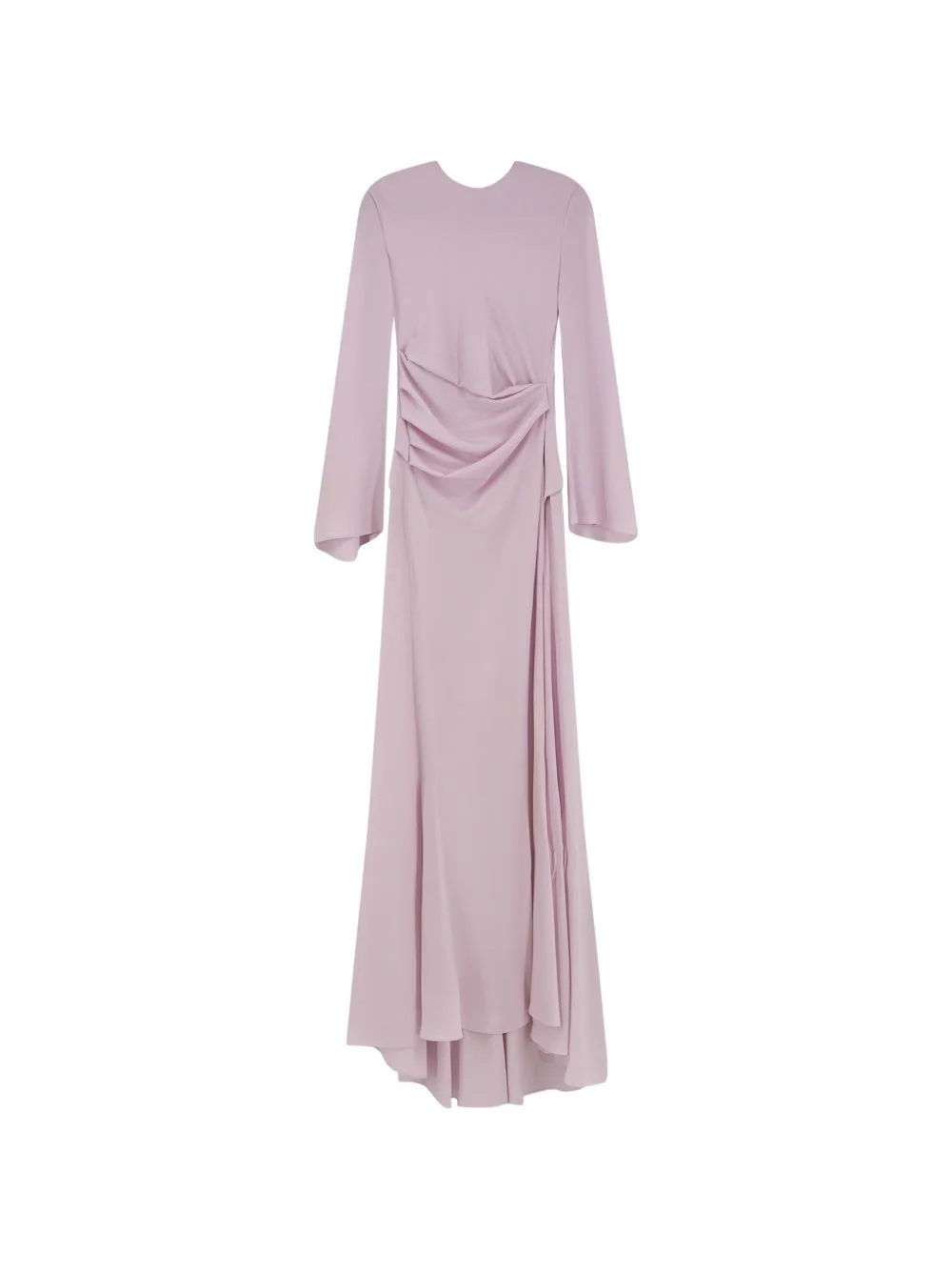 long-sleeve draped maxi dress Highlights - Pale powder pink - Flared long sleeves - Ruched detail - Keyhole back - Concealed-zip fastening Made in Italy Composition Viscose 69%, Polyester 31% Washing instructions Read Manufacturer Guidelines