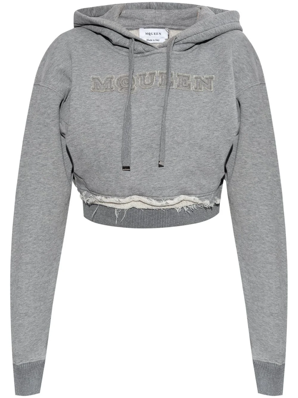 logo-embroidered hoodie Highlights - Light grey - Drawstring hood - Ribbed trim - Distressed finish - Embroidered logo at the chest Made in Italy Composition Cotton 100%