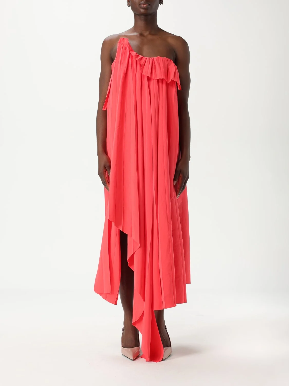 DESCRIPTION - Style: Elegant - Model: Asymmetric - Shoulders: Regular - Closure: Back closure with zip - Bottom: With asymmetric hemline - Length: Long dresses - Occasion: Evening and party dresses - Sleeves: One-shoulder dresses - Materials: Viscose blend - Pattern: Plain-colored DETAILS AND CARE Composition VISCOSE MIX SIZE AND FIT Sizes not available Size and fit Regular fit Designer code: 819110QEAF2 6068 Giglio Code: 424624 Designer: McQueen Collection: McQueen Woman Category: Clothing McQueen