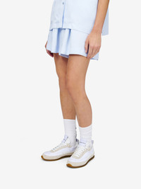 The EC1 Sneaker – sleek round-toe silhouette in white with a retro-inspired aesthetic. The shoe features topstitch detailing and McQueen logo on the back. Product details - Round toe - McQueen logo - Heel tab - Contrasting rubber sole - Product code: 856192WIAJN9013 - Made in ITALY - Material: 100% Calf Leather