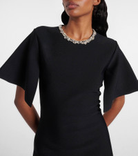 McQueen is celebrated for its uncompromising expression of individuality, subversive strength, and true power. This cocktail dress is defined by its crystal-embellished neckline and draped, open sleeves. Product Details - Material: 78% viscose, 16% polyester, 4% polyamide, 2% elastane - Care instructions: dry clean - Made in Italy - Designer color name: Black/Crystal - Item color: black - Embroidery: 100% glass - Closure: zipped back - Item number: P01064317 Size & Fit - True to size - Cinched waist - Stretchy fabric - The model seen in the picture is 178cm-5'10" and wearing a size XS
