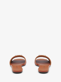 The T-Bar flat sandal - Soft tan leather with a round toe silhouette and silver tone metal T-Bar detailing engraved with the McQueen logo. Product details - Round toe - T-Bar detailing - Heel height: 5mm / 0.1 inches - Product code: 817471WIACT2111 - Made in Italy - Material: Calf Leather