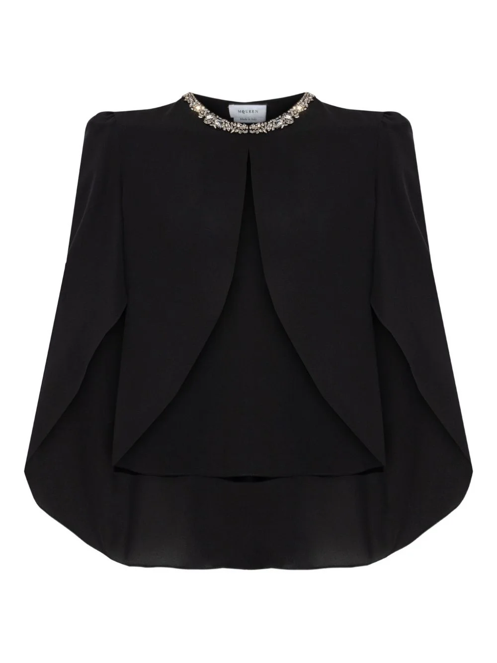 silk top Highlights - Black - Crystal embellishment - Cape design - Front slit Made in Italy Composition Silk 100% Washing instructions Read Manufacturer Guidelines