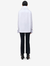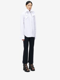 Shirt in optical white compact cotton poplin. Exaggerated draped collar. Finished with a front button fastening. Product details - Exaggerated draped collar - Front button fastening - Made with organic cotton yarn - Product code: 821921QAABC9000 - Made in Italy - Material: Cotton