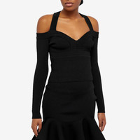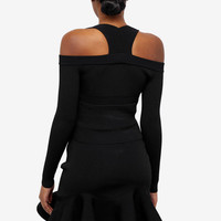 Since its debut at Alexander McQueen’s SS99 show, graffiti-style art has been synonymous with the iconic British brand. Showcasing the house’s fascination with science and structure, the SS23 collection features deconstructed tailoring, astral crystal embroideries and exaggerated volumes. Featuring a cut out neckline, this long sleeve top is cut to a cropped silhouette. - 76% Viscose, 15% Polyester, 8% Polyamide, 1% Elastane - Wide Neckline - Concealed Zip Closure