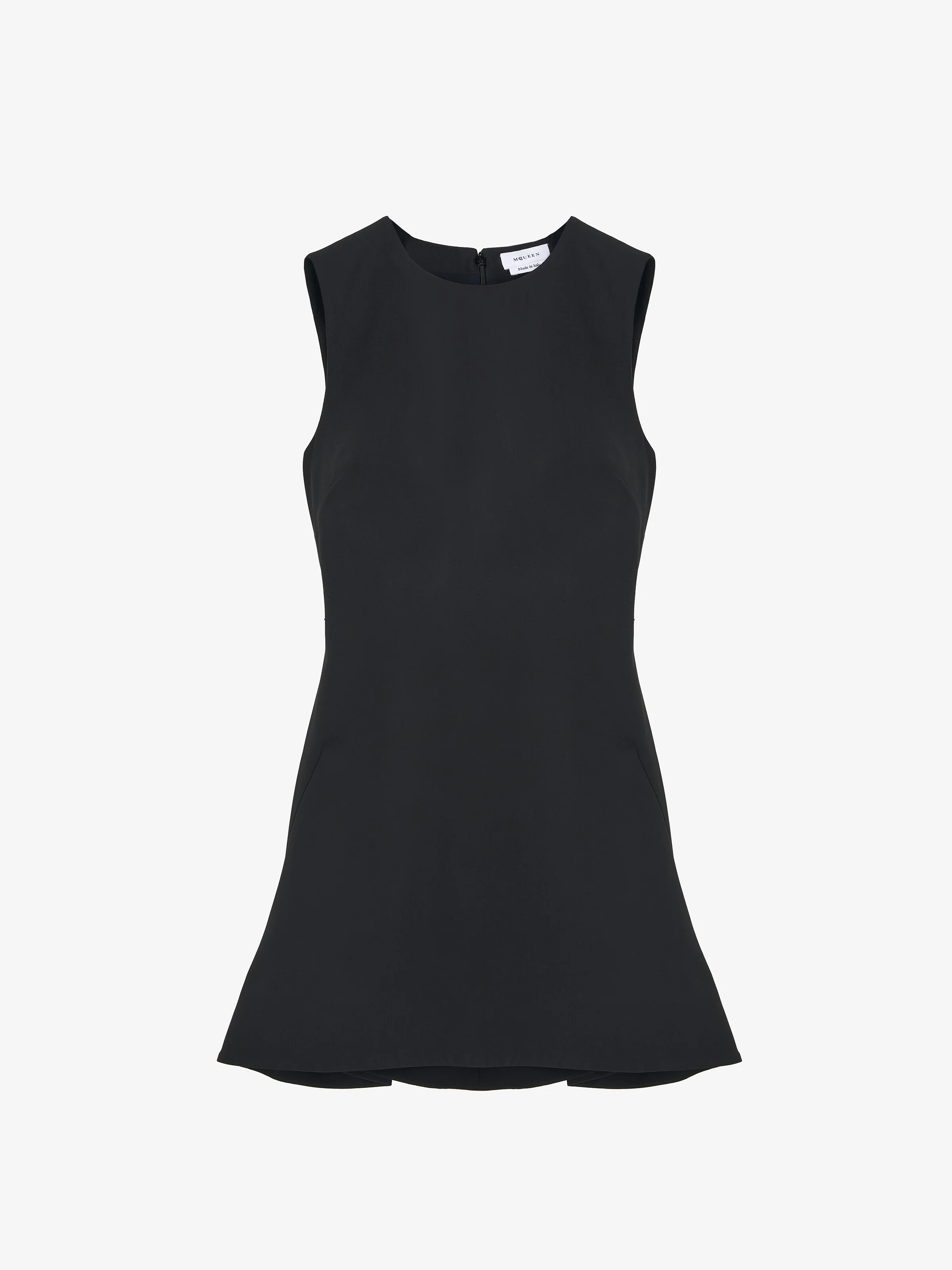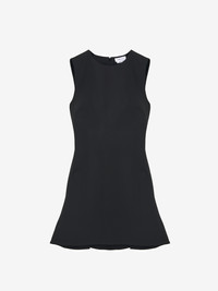 Sleeveless mini dress in black wool viscose tailoring. Crew neck and gathered detailing on the back of the skirt. Finished with a back zip fastening. Product details - Crew neck - Sleeveless - Back zip fastening - Contains certified wool yarn - Product code: 841647QJAFH1000 - Made in ITALY - Material: 72% Wool, 28% Viscose