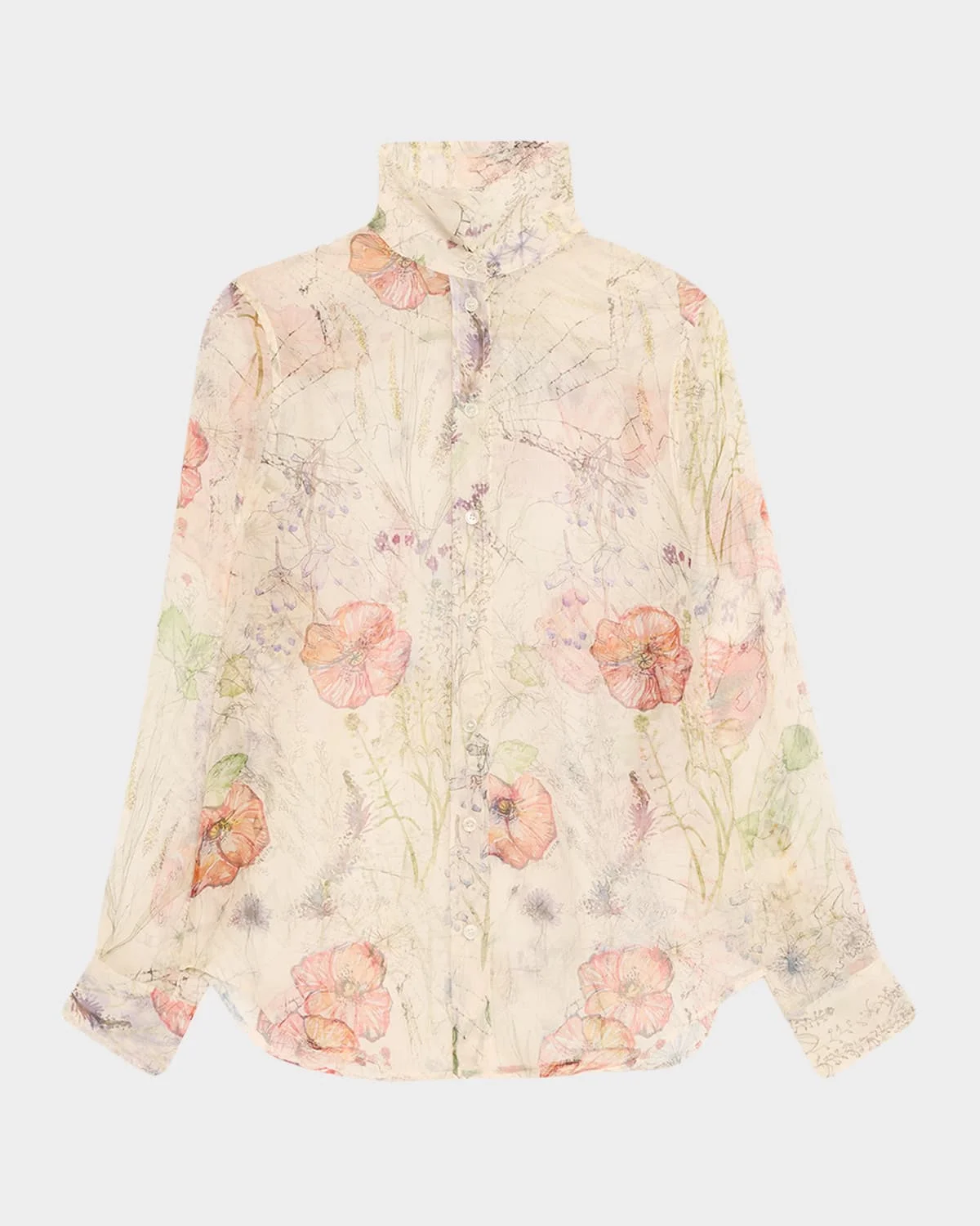 Floral-Print Silk Organza Collared Blouse