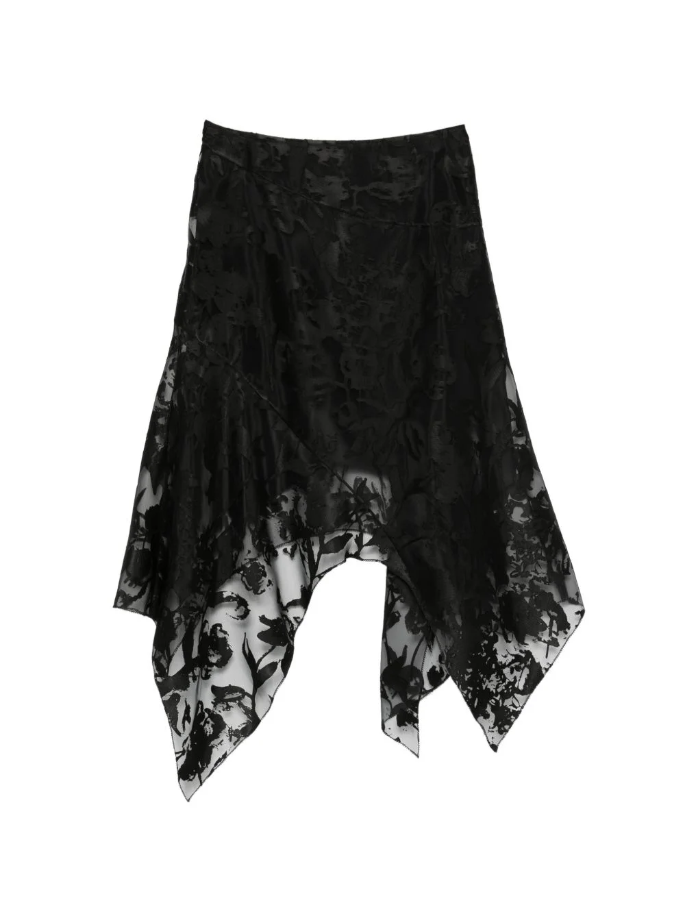 flower devore asymmetric skirt Highlights - Black - Floral devore - Asymmetric hem - Semi-sheer - Tonal stitching Made in Italy Composition Outer: Viscose 79%, Polyester 21% Lining: Acetate 73%, Silk 27% Washing instructions Dry Clean Only