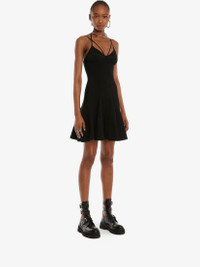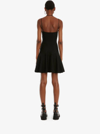 Black shiny viscose knit mini dress featuring an engineered corset. Material:71% Viscose, 15% Polyester, 13% Polyamide, 1% Elastan Product Code:698400Q1A0U1000