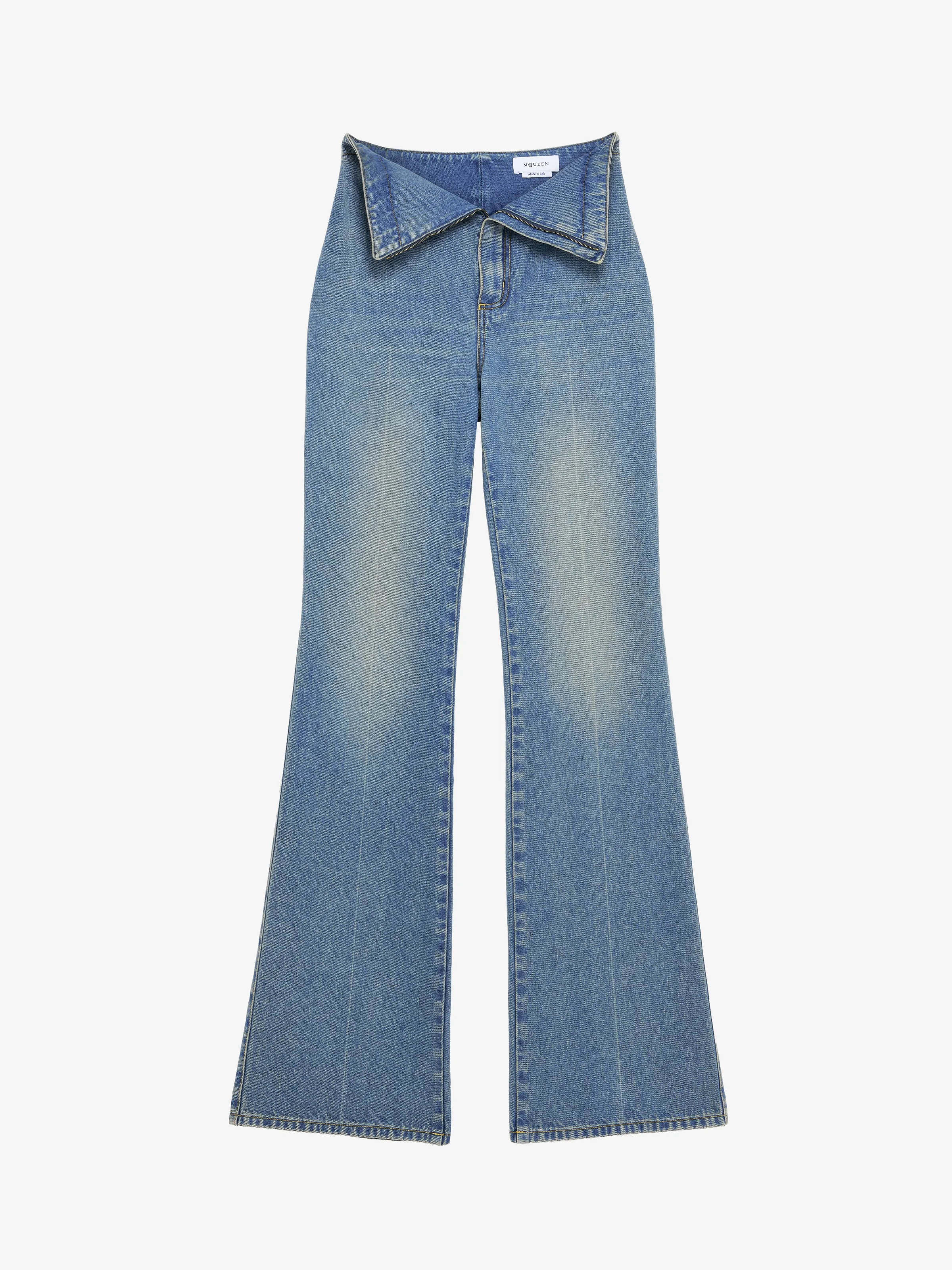 Light blue denim bootcut jeans. High fold-over waist with zip fastening. Finished with two side pockets and two patch pockets on the back. Product details - High fold-over waist - Side pockets - Zip fastening - Product code: 857092QMAD04383 - Made in ITALY - Material: 100% Cotton