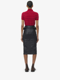 Pencil skirt in black smooth stretch leather. High fold-over waist with zip fastening. Product details - High fold-over waist - Zip fastening - High Waist - Product code: 817914Q5ANU1000 - Made in Italy - Material: Lamb Leather