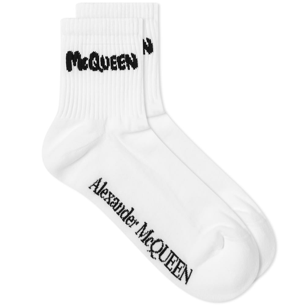 Synonymous with the iconic British brand, the Alexander McQueen graffiti logo decorate these white socks. Combining luxury with comfort they are finished with a traditional McQueen signature on the base of the foot. - 74% cotton, 24% polyamide, 2% elastane - Made in Italy