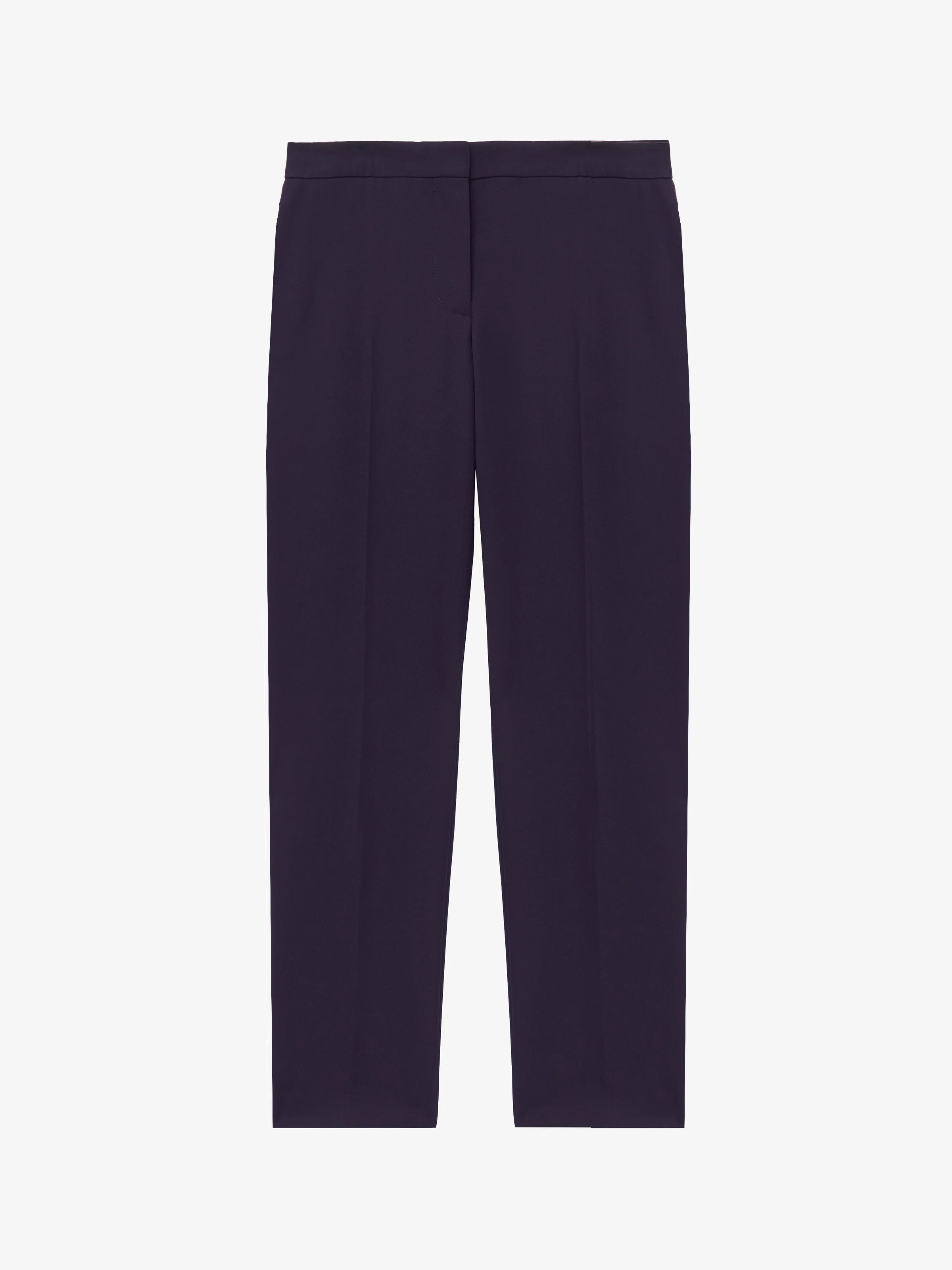 Cigarette trousers in violet grain de poudre. Detailed with two side pockets and a jetted pocket on the back. Finished with a concealed zip and hook fastening. Product details - Side pockets - Back jetted pocket - Concealed zip and hook fastening - Product code: 830041QJAAC5144 - Made in ITALY - Material: 100% Wool