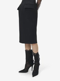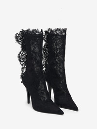 The Heron Lace Boot – Victorian-inspired heritage black lace with a sharp pointed toe silhouette. Finished with a back zip closure. Product details - Back zip closure - Sharp pointed toe - Leather sole - Heel height: 105mm / 4.1 inches - Product code: 846023W4ABR1003 - Made in ITALY - Material: Cotton, Polyamide