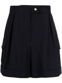 high-waisted cargo shorts Highlights - Navy blue - Wool blend - Pleat detailing - High-waisted - Off-centre front fastening - Two side cargo pockets - Turn-up hem Made in Italy Composition Lining: Cupro 100% Outer: Wool 77%, Cotton 23% SIZE & FIT Model measurements Height 5 ft 10 in(1.78 m) Bust/Chest 31.49 in(80 cm) Hips 35.03 in(89 cm) Waist 23.62 in(60 cm) FittingInformation Designed for a loose fit, offering comfort and movement when worn Made from a midweight non-stretch fabric This piece fits true to size – take your usual size Washing instructions Dry Clean Only