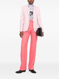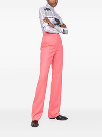 high-waisted tailored wool trousers Impeccable tailoring is at the heart of Alexander McQueen. Crafted in coral-pink wool, these tailored trousers sit high at the waist and have a straight-cut leg, accentuated by the pressed creases for an elongating effect. Made in Italy Composition Lining: Cupro 100% Outer: Wool 100% SIZE & FIT FittingInformation This piece fits true to size. We recommend you get your regular size Designed to be fitted at the waist and hips, loose over the leg Made with a mid-weight non-stretch fabric Washing instructions Dry Clean Only