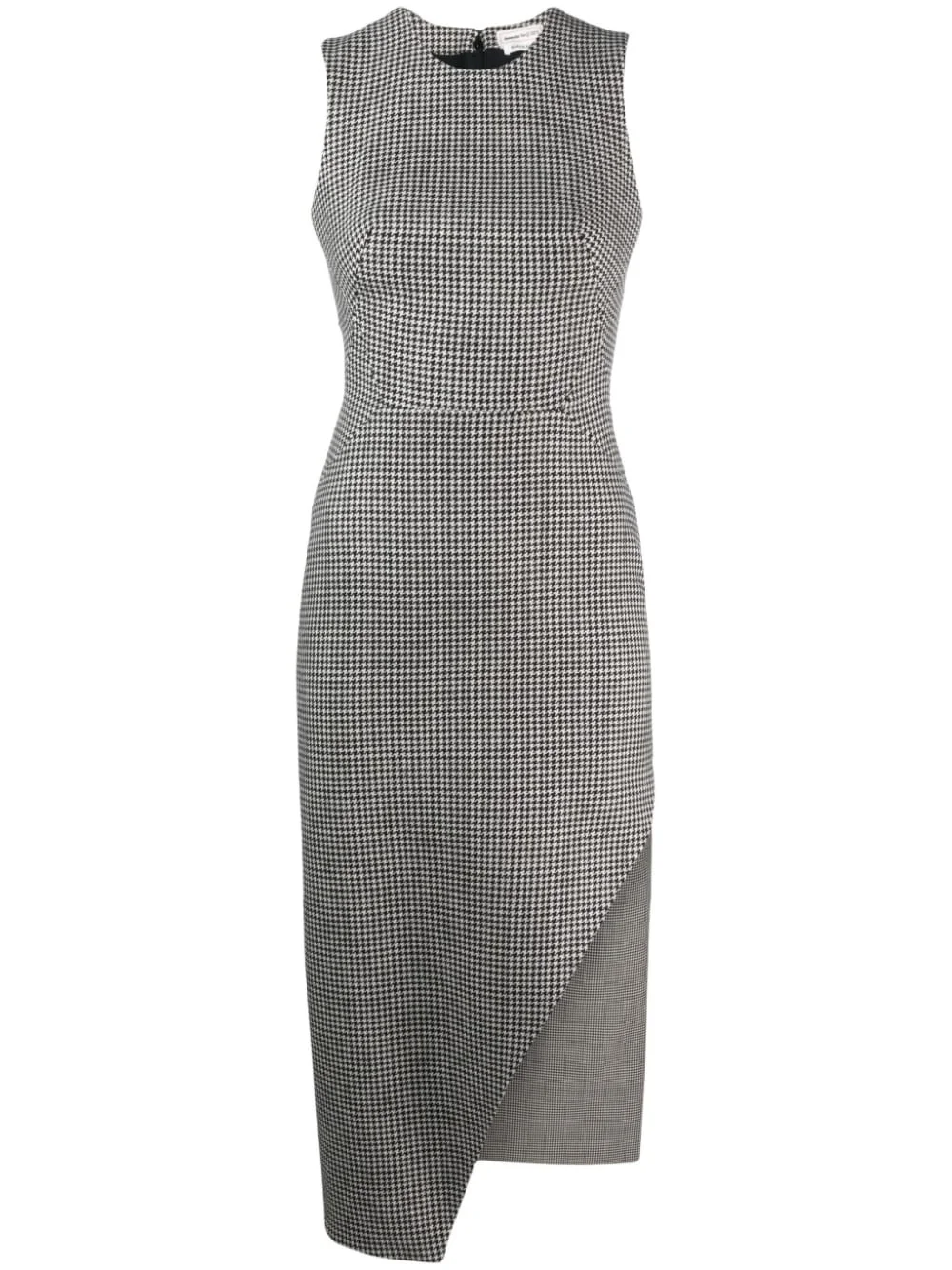 houndstooth asymmetric midi dress