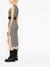 houndstooth asymmetric midi dress Rendered in a black and ivory colourway, this midi dress from Alexander McQueen is woven from wool in Italy into a timeless houndstooth pattern. Belted at the waist for a defined silhouette, it falls into an asymmetric skirt with a slit at the side. Made in Italy Composition Lining: Wool 100%, Acetate 74%, Silk 26% Outer: Wool 100% SIZE & FIT Model measurements Height 5 ft 10 in(1.79 m) Bust/Chest 31.49 in(80 cm) Hips 35.03 in(89 cm) Waist 23.62 in(60 cm)