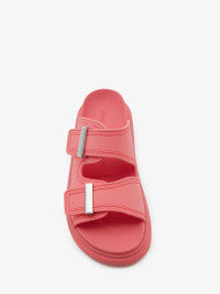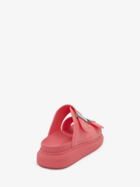 Coral rubber slide featuring signature Alexander McQueen in high relief, silver hardware and an oversized rubber sole. The slide features a round toe silhouette with a metal hardware bar slide and engraved with signature Alexander McQueen. Material:100% Rubber Product Code:658063W4Q516279
