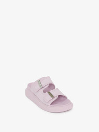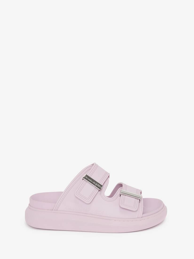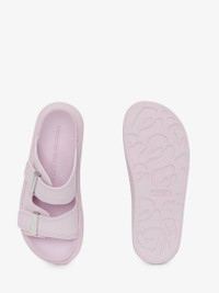 Lilac rubber slide featuring signature Alexander McQueen in high relief, silver hardware and an oversized rubber sole. The slide features a round toe silhouette with a metal hardware bar slide and engraved with signature Alexander McQueen. Material:100% Rubber Product Code:658063W4Q515410