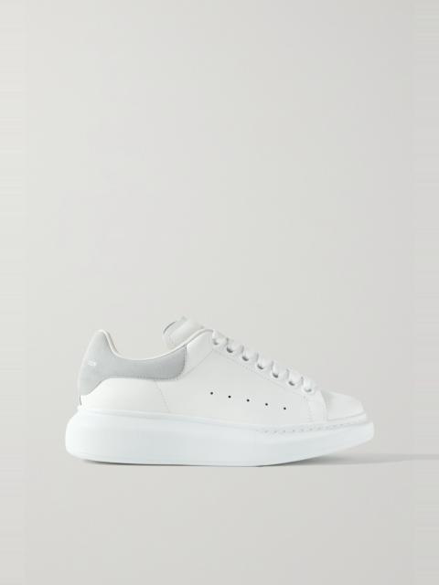 Iridescent-trimmed leather exaggerated-sole sneakers