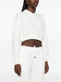 cropped sweatshirt Highlights - White - Crew neck - Drop shoulder - Long sleeves - Flocked logo Made in Italy Composition Polyester 100%, Cotton 100% SIZE & FIT Model measurements Height 5 ft 11 in(1.8 m) Bust/Chest 32.67 in(83 cm) Hips 36.22 in(92 cm) Waist 24.4 in(62 cm) FittingInformation Designed for a relaxed fit, this piece allows for comfort and movement when worn Cropped in length Made from a midweight non-stretch fabric, this piece offers minimal elasticity when worn