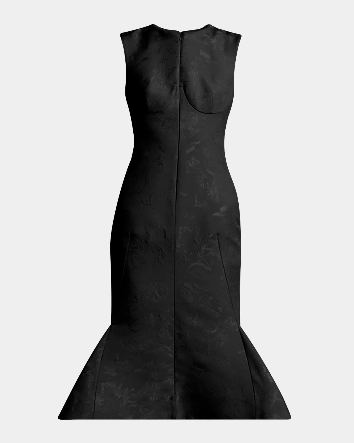 - McQueen jacquard evening dress features contour seaming and a flared hem - Jewel neckline with an invisible zip closure - Sleeveless - Body-skimming fit - Hem falls below the knee - Invisible back zipper - Polyester/viscose/wool - Made in Italy