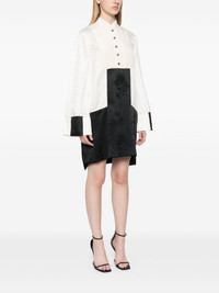 jacquard mini dress Highlights - Black/white - Satin finish - Colour-block panelled design - Patterned jacquard - Short front button fastening - Band collar - Long wide sleeves - Shift style - Side slits - Straight hem Made in Italy Composition Rayon 63%, Silk 37% SIZE & FIT Model measurements Height 5 ft 9 in(1.75 m) Bust/Chest 31.88 in(81 cm) Hips 34.64 in(88 cm) Waist 24.01 in(61 cm) FittingInformation Designed to be unstructured, offering a loose fit throughout Made from a midweight non-stretch fabric