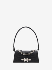 Jewelled Shoulder Mini – a timeless icon reimagined in a contemporary sleek silhouette with sharp lines. Crafted from black croc-embossed calf leather with a semi-matte finish. Detailed with Knuckle hardware featuring the signature skull. This bag can be worn in multiple ways: carry it in your hand using the ring handle or on the shoulder or across the body with the adjustable and removable leather strap. Product details - Dimensions: L 24cm x H 11cm x W 7cm - Silver-finished signature Knuckle hardware and chain detail - One main compartment - Internal card slot - Adjustable and removable leather strap - Magnet fastening - Product code: 8661381HBT21000 - Made in ITALY - Material: 100% Calf Leather