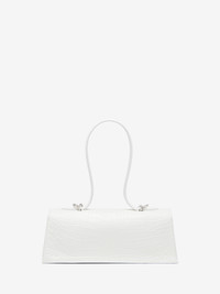 Jewelled Top Handle – a timeless icon reimagined in a contemporary silhouette featuring elongated sharp lines. Crafted from white croc-embossed calf leather with a semi-matte finish. Detailed with Knuckle hardware featuring the signature skull. This bag can be worn on the shoulder with the tonal leather strap. Product details - Dimensions: L 31.5cm x H 12cm x W 8cm - Silver-finished signature Knuckle hardware and chain detail - One main compartment - Internal card slot - Tonal leather strap - Magnet fastening - Product code: 8661371HBT29013 - Made in ITALY - Material: 100% Calf Leather