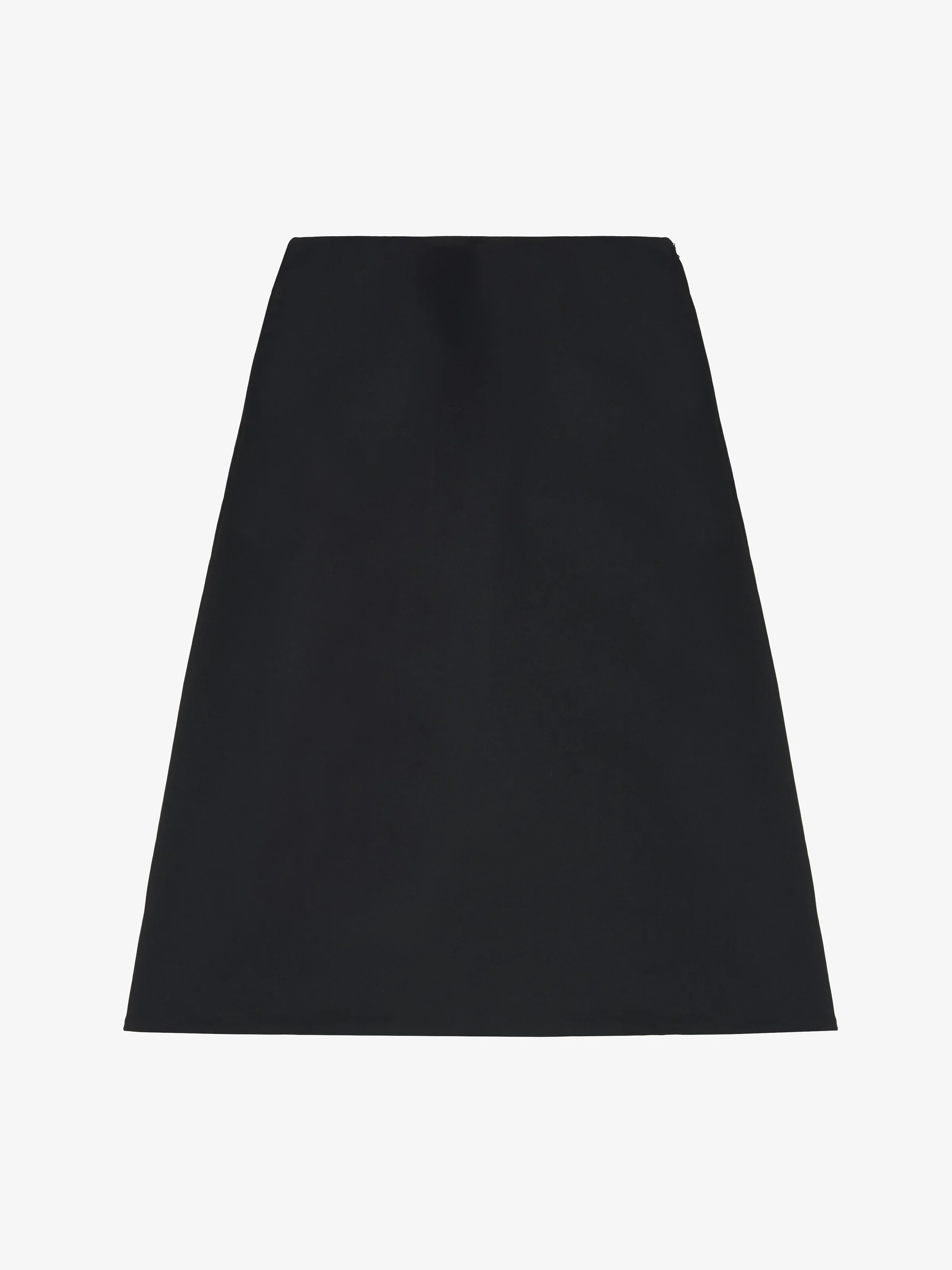 Flared knee length skirt in black poly duchesse. High waist, side pockets and kickback detailing. Finished with a side zip fastening. Product details - High waist - Side pockets - Side zip fastening - Product code: 832556QEAGH1000 - Made in Italy - Material: 61% Polyester, 39% Silk
