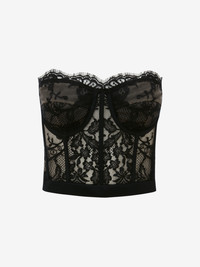 Black lace corset with floral detailing. Finished with a back zip fastening. Product details - True to size - Product code: 586959QEAAH1000 - Made in Italy - Material: 74% Acetate, 26% Silk