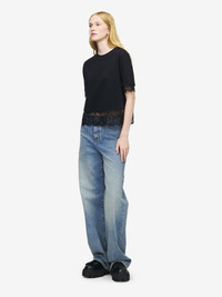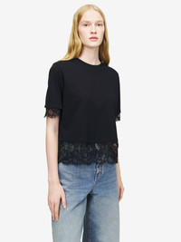Crew neck T-shirt in black cotton jersey. Tonal lace panels at the sleeves and hem. Product details - Crew neck - Short sleeves - Product code: 850805QLAE61000 - Made in ITALY - Material: 100% Cotton