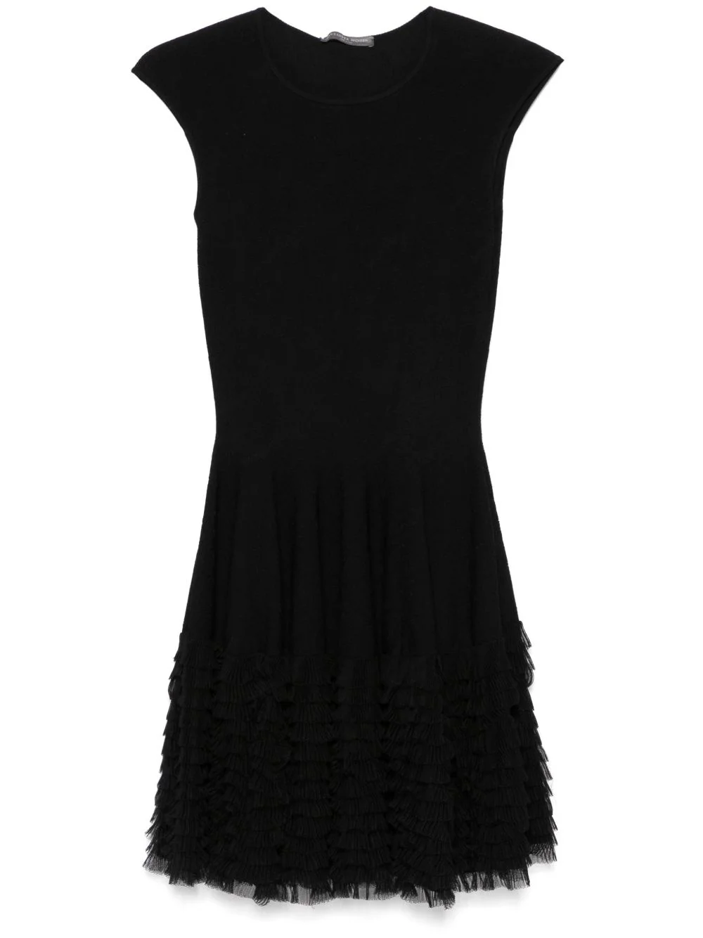 lace knit ruffle dress Highlights - Black - Crew neck - Sleeveless - Full jacquard Made in Italy Composition Outer: Viscose 63%, Silk 30%, Polyamide 6%, Spandex/Elastane 1% Viscose 63%, Silk 30%, Polyamide 6%, Spandex/Elastane 1% SIZE & FIT Model measurements Height 5 ft 10 in(1.78 m) Bust/Chest 33.46 in(85 cm) Hips 36.22 in(92 cm) Waist 23.22 in(59 cm)