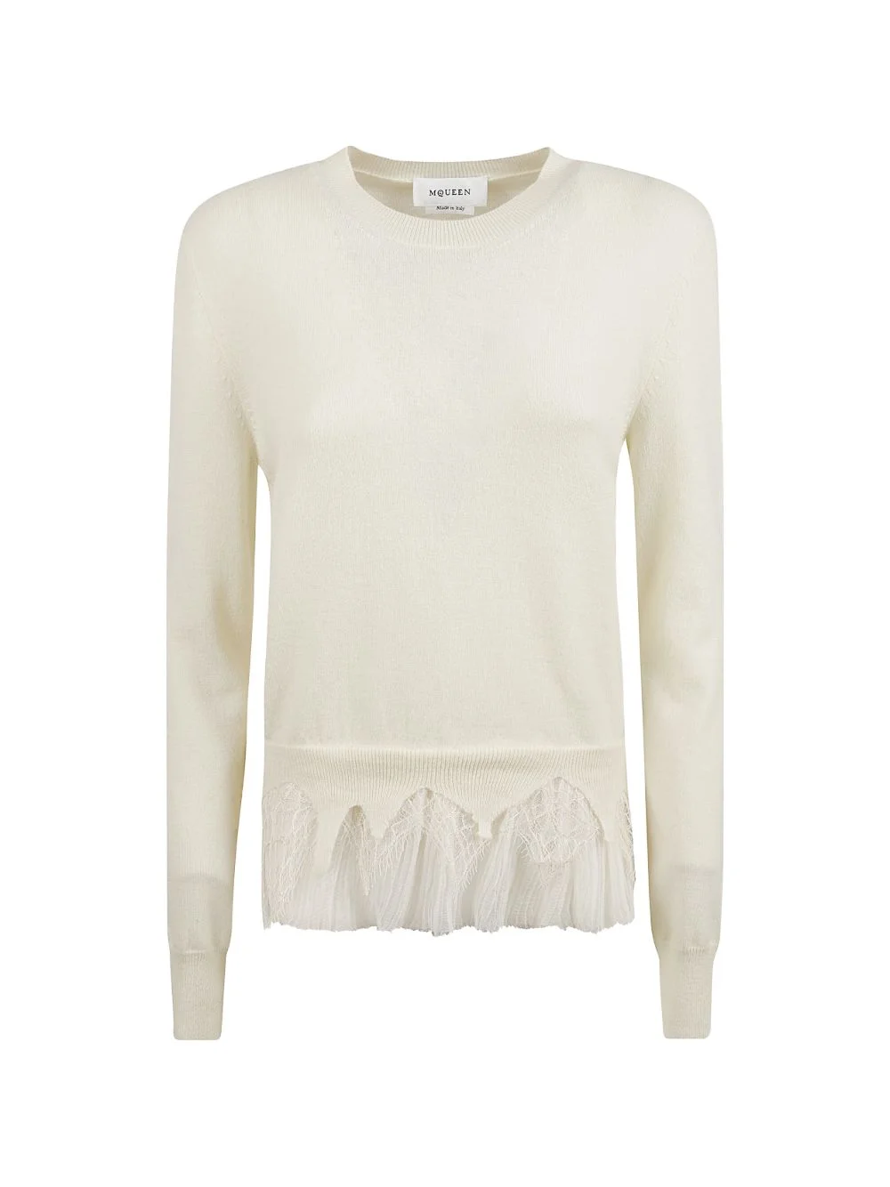 lace pleated sweater Highlights - Beige - Lace trim - Pleated trim - Crew neck - Long sleeves - Ribbed cuffs and hem Made in Italy Composition Wool 50%, Cashmere 50% Washing instructions Read Manufacturer Guidelines