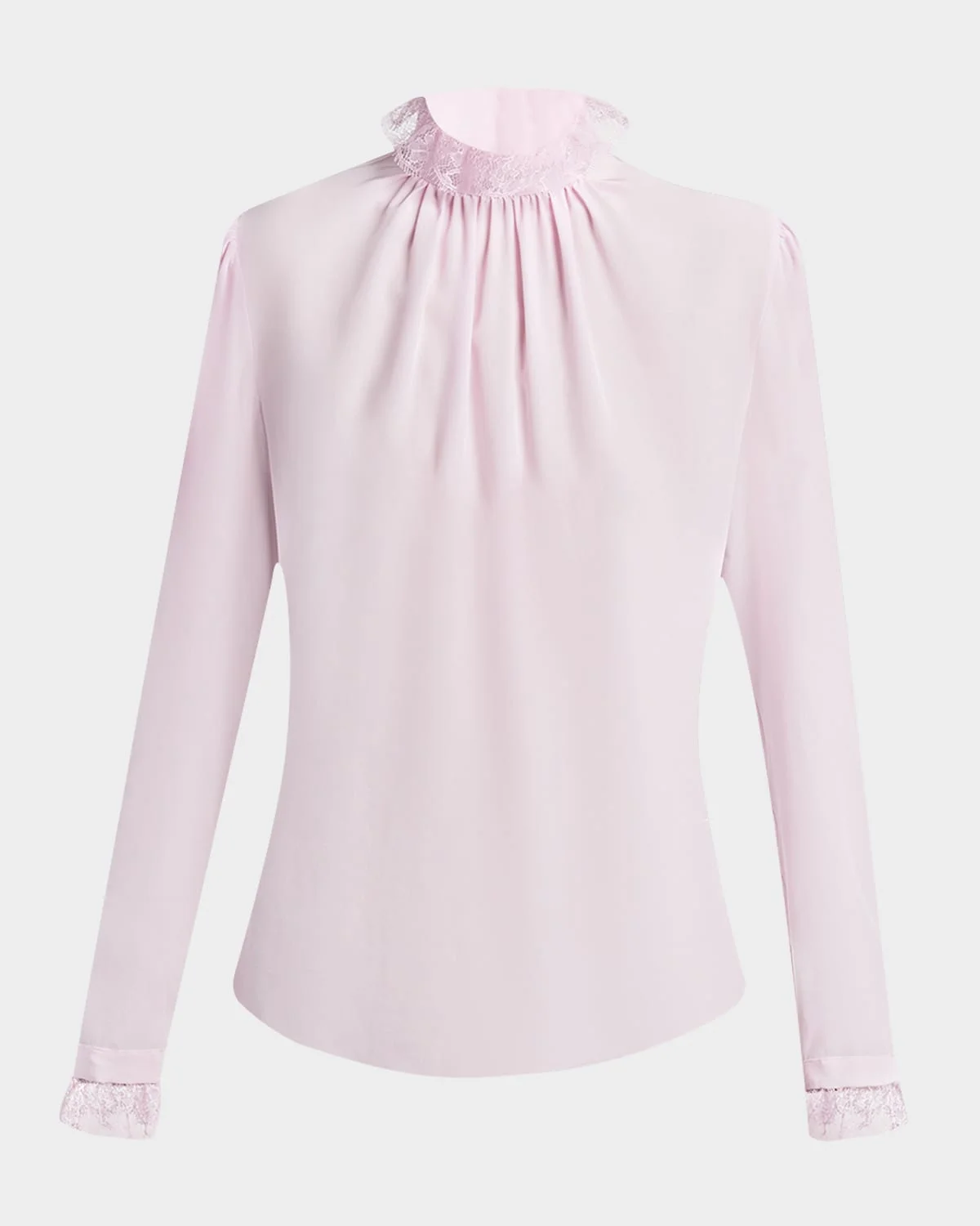 Lace Ruffle-Neck Long-Sleeve Silk Top
