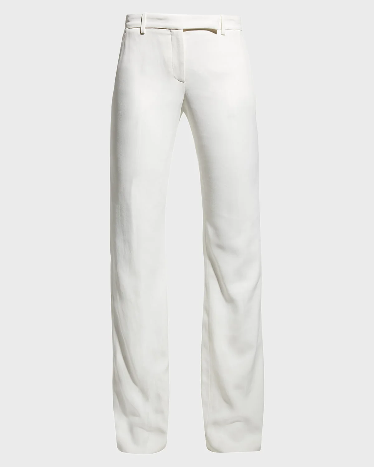 McQueen classic suiting pants in leaf crepe. High rise. Side slash pockets. Straight fit through seamed legs. Full length. Tab/zip fly; belt loops. Viscose/acetate. Made in Italy.