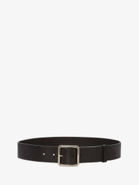 Black calf leather belt with an adjustable buckle. Brass hardware with a silver finish. Product Details: Logo Basic solid colour Metallic buckle closure Material:100% Calfskin Product Code:5584491AC0Y1000