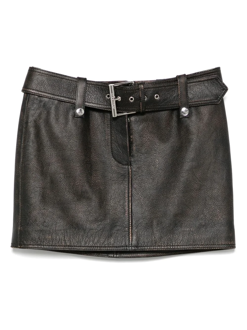 leather mini skirt Highlights - Cedar brown - Concealed fly and button fastening - Belted waist - Full lining Made in Italy Composition Lining: Cotton 97%, Elastane 3% Outer: CALFSKIN 100% SIZE & FIT Model measurements Height 5 ft 11 in(1.8 m) Bust/Chest 32.67 in(83 cm) Hips 35.82 in(91 cm) Waist 25.98 in(66 cm) FittingInformation This mini-length skirt is intended to be worn high on the waist The belt offers adjustability for fitted preferences Firm leather offering little flexibility to maintain its durability and sturdiness Washing instructions Specialist Cleaning