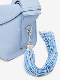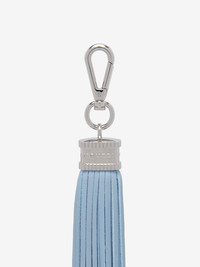 Tassel charm in shirting blue smooth lamb nappa leather featuring silver-finished hardware with a dog clip and the embossed McQueen logo. Product details - Dimensions: Length 2 x Height 37 x Depth 1 cm / 0.7 x 14.5 x 0.3 inches - Brass hardware with silver finishing - Product code: 8300981VAAA4900 - Made in Italy - Material: 100% Lamb Leather